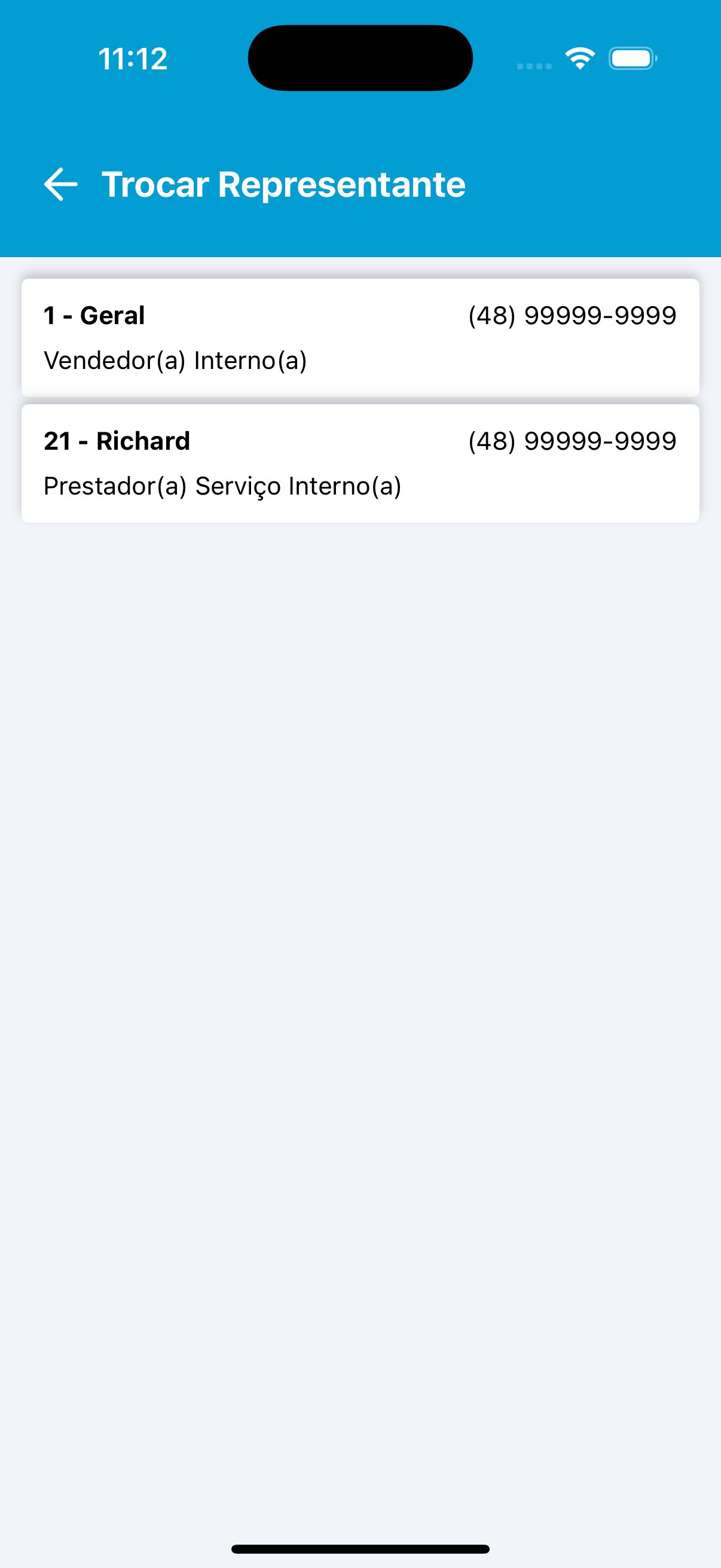 Nesta tela, serão mostrados todas todos os subordinados que estão ligados a você, clicando em um deles será efetuado o login utilizando o cadastro dele.